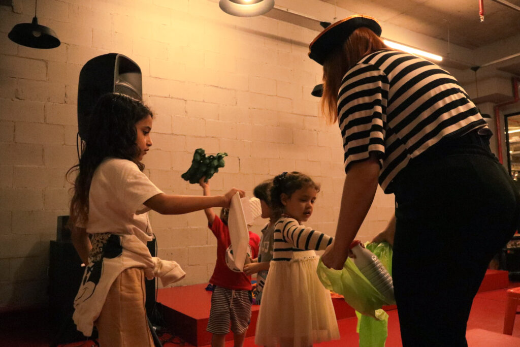 Na contação, os olhos atentos das crianças descobriram que até o rolinho de papel que vai para o lixo pode se transformar em luneta. Que uma simples garrafa pode virar brinquedo mensageiro do mar. Que o mundo é mais colorido e valioso quando olhamos para o lixo com olhos de cuidado.