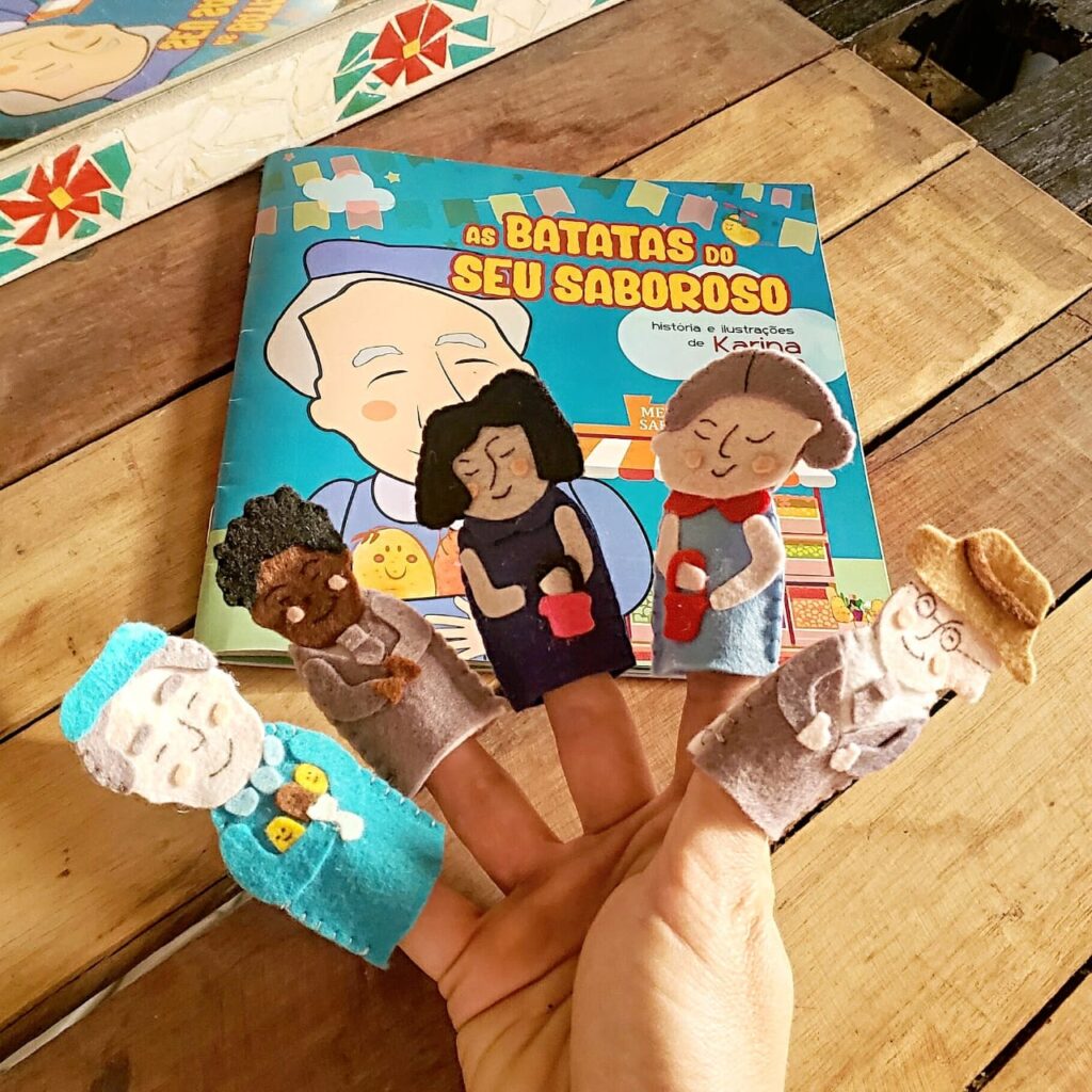 Neste kit você recebe o livro As Batatas do Seu Saboroso + 5 dedoches personagens desta história. A narrativa acontece em um mercado encantado, onde o proprietário faz tudo com muito amor, há um segredo guardado nas batatas que encantam a cidade inteira. Descubra junto com seus pequenos a jornada emocionante por trás desse mistério…